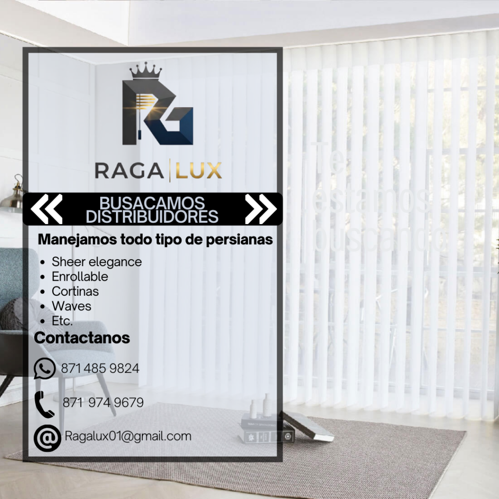 En Raga Lux, somos fabricantes expertos en soluciones de decoración de ventanas. Estamos en busca de NUEVOS DISTRIBUIDORES que quieran elevar su negocio al siguiente nivel.
